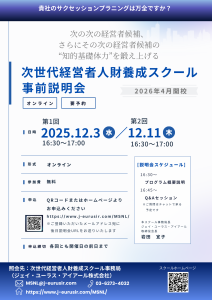2026年度「次世代経営者人財養成スクール」の事前説明会は終了しました。